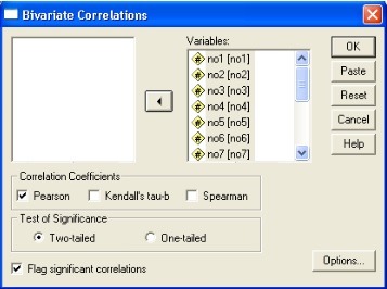 - Setelah semua nama masuk ke kolom Variables, pada kolom Correlation Coefficients, centang Pearson. Abaikan yang lainnya dan Klik OK.